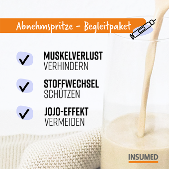Wichtiger Hinweis: Das INSUMED Konzept steht weiterhin für eine erfolgreiche und nachhaltige Gewichtsreduktion durch Mahlzeitenersatz-Therapie. Die Abnehmspritze bieten wir nicht als Produkt an, lediglich ein passendes Begleitpaket. Die zusätzliche Betreuung durch einen Arzt ist für uns Voraussetzung. Wir sehen leider viel zu häufig, wie Menschen durch falsche Anwendung der Spritze, ihre Gesundheit aufs Spiel setzen und möchten dem entgegenwirken. Unser Begleitpaket ersetzt nicht den Besuch beim Arzt, der während der Abnehmspritzentherapie stattfinden sollte.